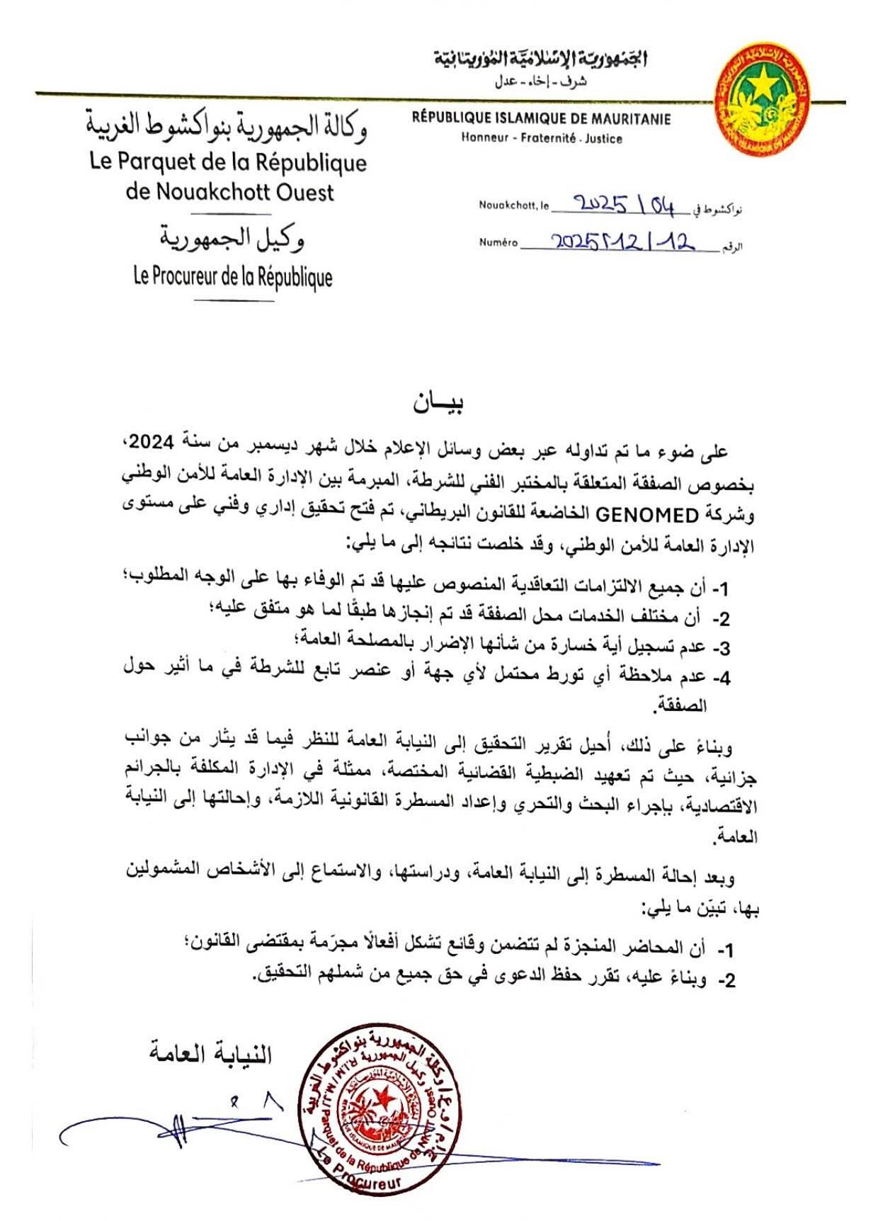 ودعا البيان مرتادي منطقة "أكريدل" وسالكي طريق نواكشوط- أكجوجت، إلى الاطمئنان مع توخي الحيطة والحذر.