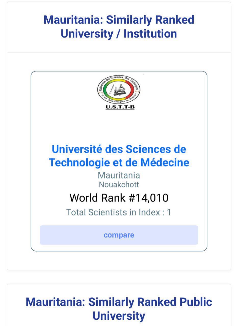 وأن جامعة نواكشوط جاءت في المرتبة 12,782 بين جامعات العالم،