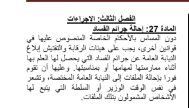 العميد الاستاذ / الكتاب ولد المختار طالب قيام قطب الفساد بالنيابة العامة بمحكمة ولاية انواكشوط الغربية بتفعيل المادة 27 من قانون الفساد رقم 0021 / 2025 الصادر بتاريخ : 25 يونيو 2025 وهذا نصها :