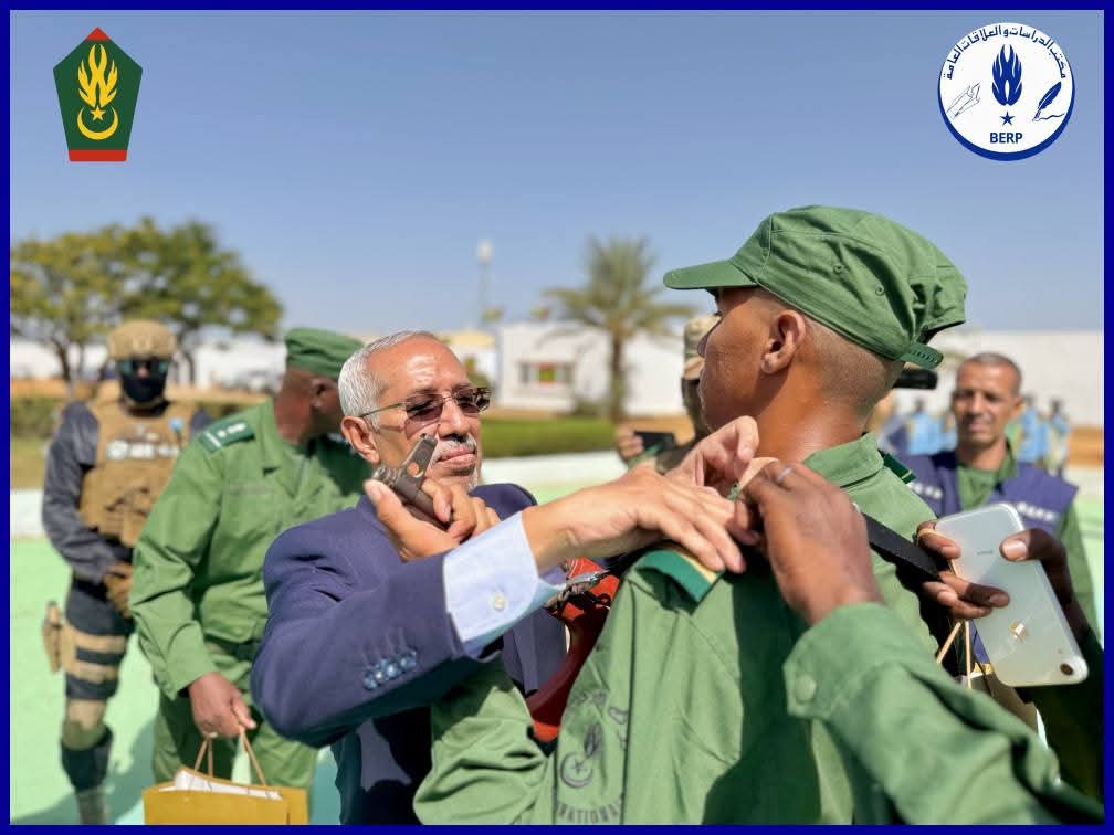 أشرف معالي وزير الدفاع وشؤون المتقاعدين واولاد الشهداء السيد حنن ولد سيدي رفقة الفريق أحمد محمود ولد الطايع قائد أركان الدرك الوطني، صباح اليوم في مدينة روصو، على حفل تخرج دفعتين جديدتين من مدرسة الدرك الوطني.
