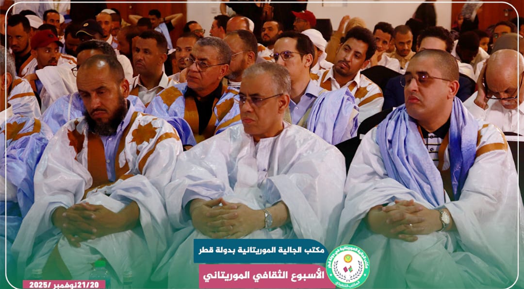 نظم مكتب الجالية الموريتانية بدولة قطر، فعاليات الأسبوع الثقافي الموريتاني بمناسبة الذكرى 65 للاستقلال الوطني للجمهورية الإسلامية الموريتانية ومرور 50 عامًا على العلاقات الدبلوماسية بين موريتانيا وقطر.وشهد حفل الافتتاح حضور سفير الجمهورية الإسلامية الموريتانية لدى دولة قطر، محمد ببانة، وممثل إدارة الثقافة والفنون بوزارة الثقافة القطرية، إلى جانب عدد من رؤساء المراكز والجمعيات القطرية، وممثلي مكاتب الجاليات الشقيقة والصديقة، ورؤساء الهيئات الثقافية الموريتانية، إضافة إلى نخبة من المفكرين والمبدعين وأبناء الجالية الموريتانية المقيمين في قطر.