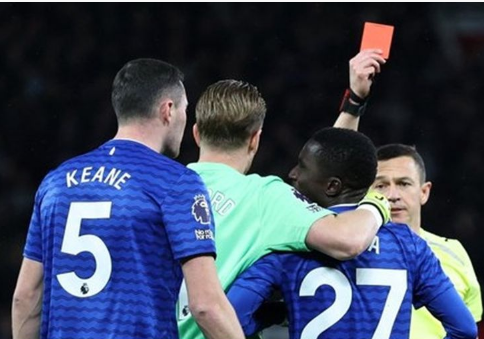 رغم الطرد المبكر، تمكن إيفرتون من تحقيق الفوز على "الشياطين الحمر" في ملعب أولد ترافورد، بفضل هدف سجله كيرنان ديوسبري-هول في الشوط الأول.