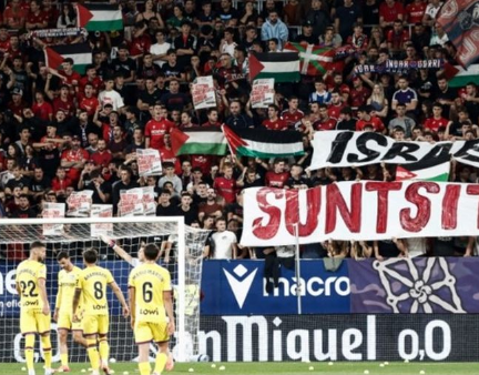 شهدت مباراة أوساسونا وخيتافي في الدوري الإسباني، السبت، على ملعب "إل سادار" في بامبولونا، توقفاً بعد عشر دقائق فقط من انطلاقتها، بسبب احتجاج الجماهير الصاخب على حرب الإبادة الجماعية في قطاع غزة.