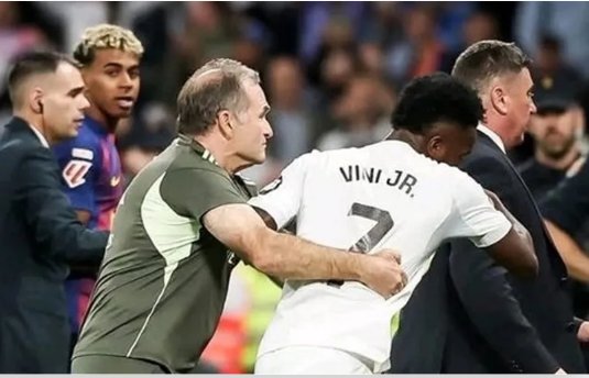 شهد "كلاسيكو إسبانيا" المثير بين الغريمين التقليديين ريال مدريد وبرشلونة، الذي انتهى بفوز الفريق الملكي بنتيجة 2-1 مساء الجمعة ضمن الجولة العاشرة من الدوري الإسباني لكرة القدم، توترا كبيرا بين لاعبي الفريقين عقب صافرة النهاية.