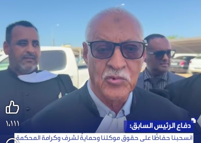 قرر لفيف فريق الدفاع عن الرئيس السابق محمد ولد عبدالعزيز , عقب انسحابهم من أمام رئيس المحكمة العليا أثناء دخوله قاعة المحكة.